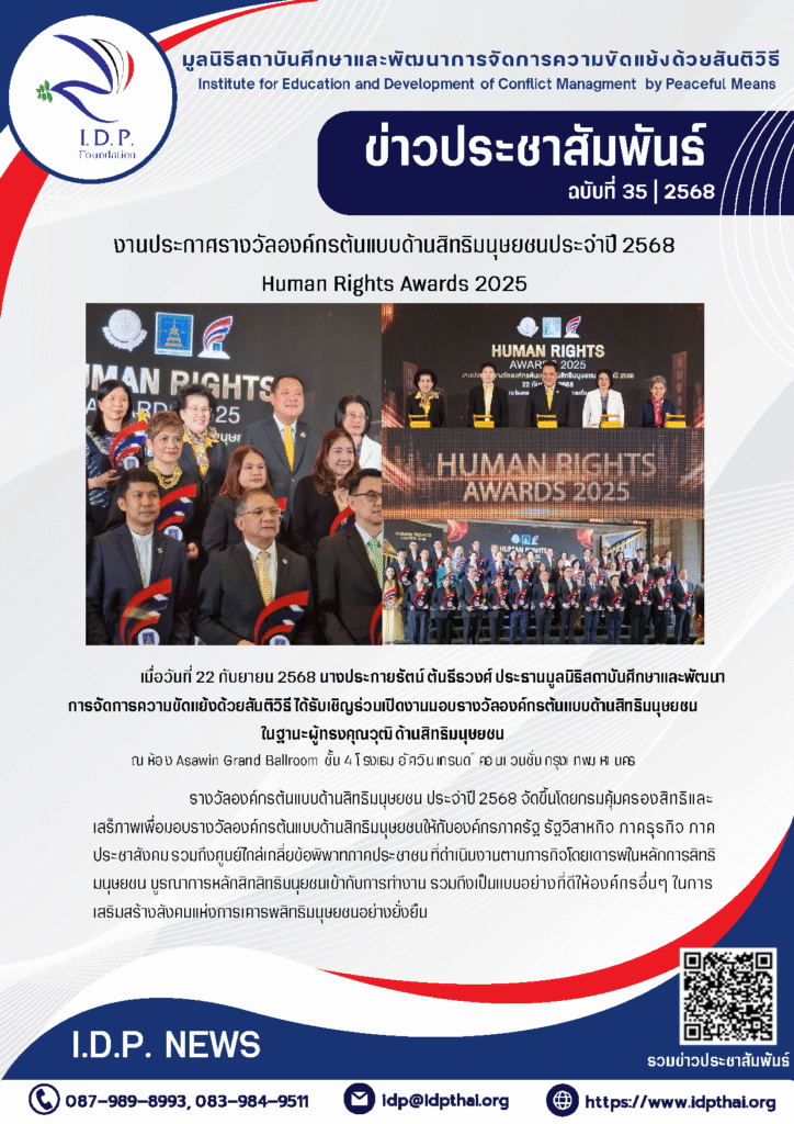 การจัดการความขัดแย้งด้วยสันติวิธี ได้รับเชิญร่วมเปิดงานมอบรางวัลองค์กรต้นแบบด้านสิทธิมนุษยชน